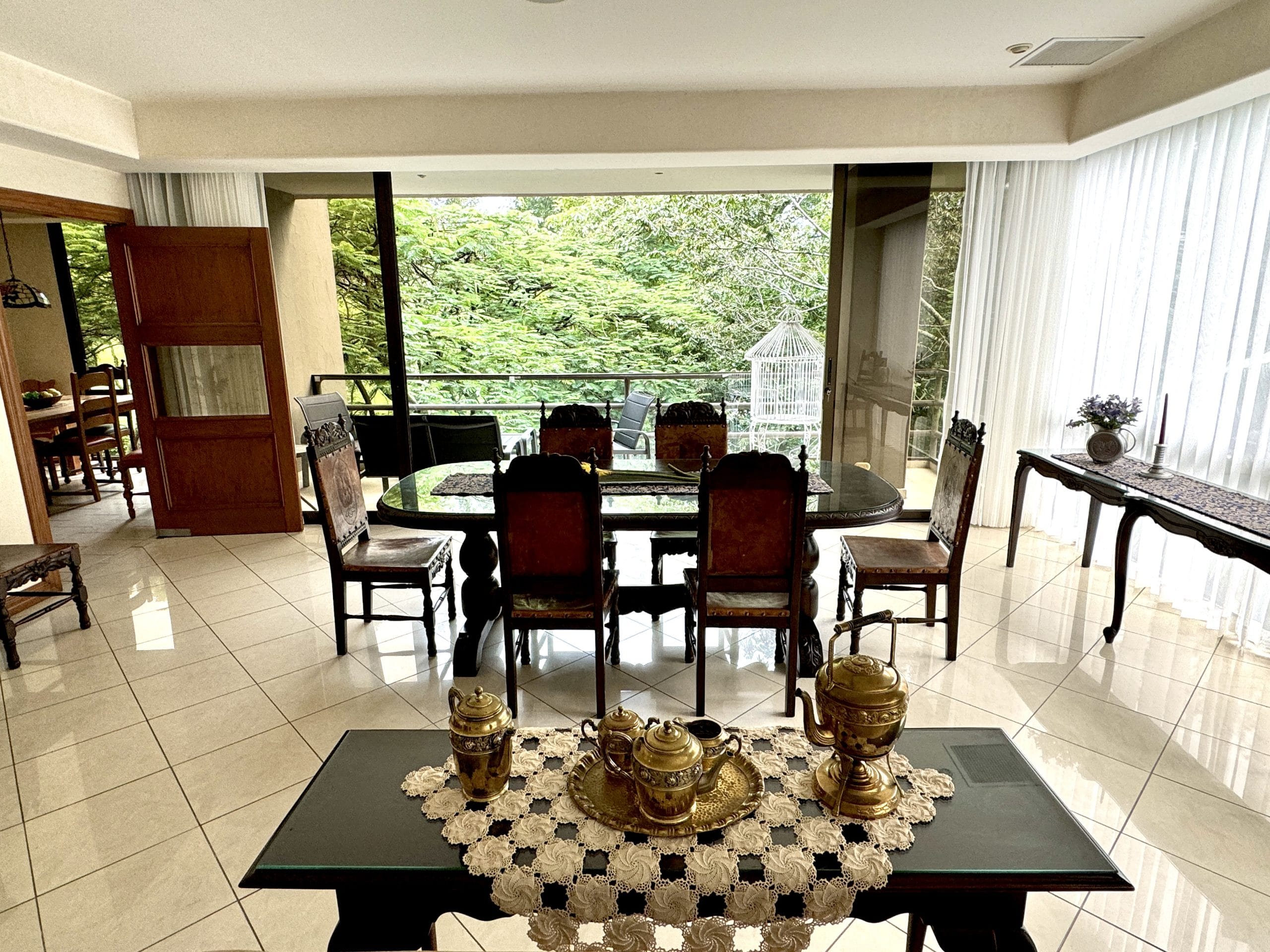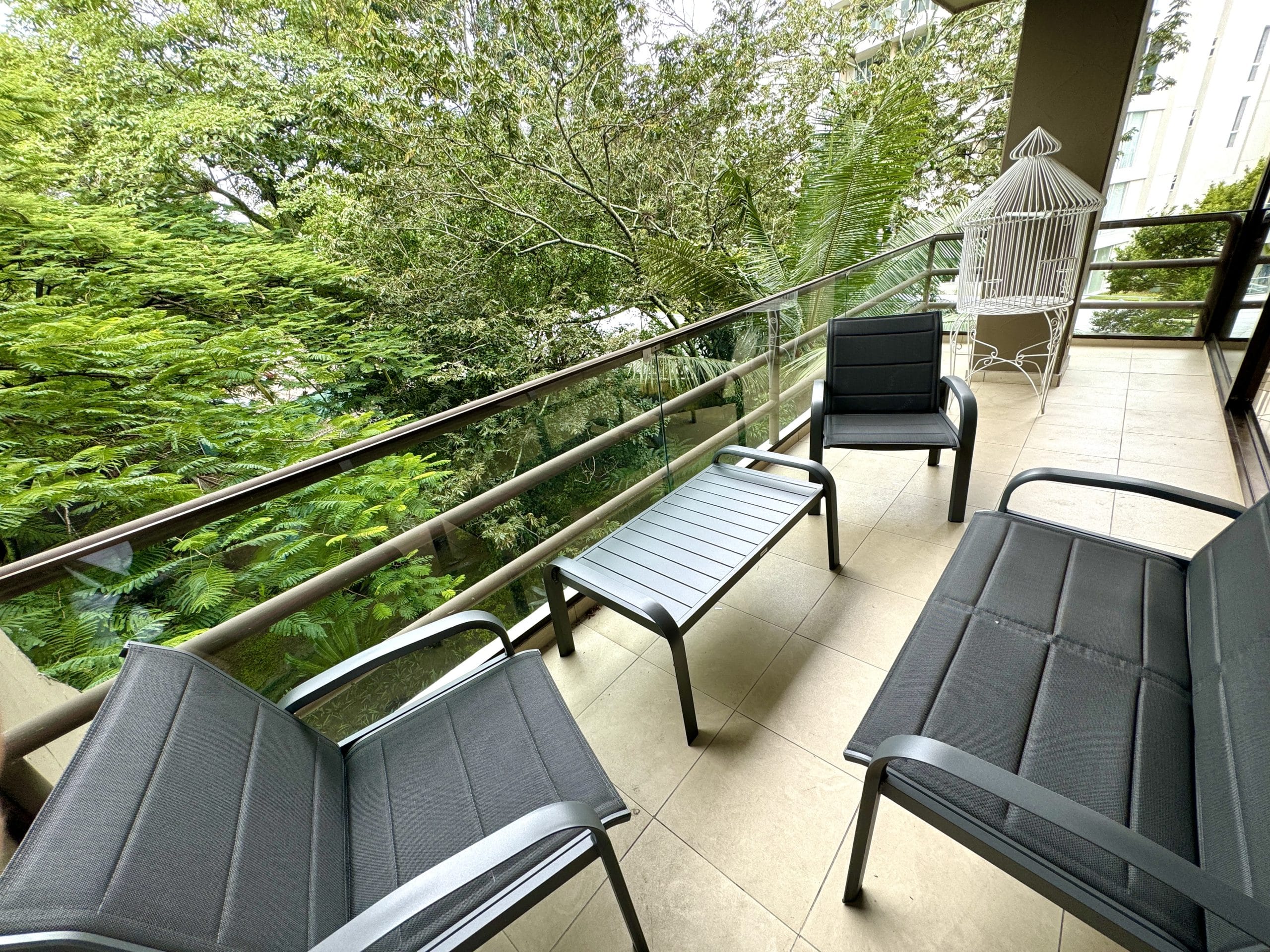 Spacious 3 bedroom semi furnished or furnished apartment for rent in San Rafael Escazú. Enjoy the panoramic view of beautiful trees and the Country Club. Located steps from Plaza Laureles Shopping Center.