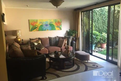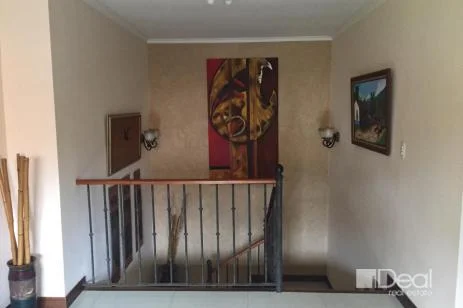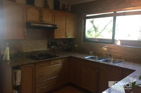 house in Bosques de las Lomas condominium. On the first floor is the living room, dining room, covered terrace with glass doors, wooden ceiling and deck that communicates with the dining room. Guest bathroom. Interiors kitchen. 100 pound gas tank. Maid’s bedroom.