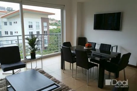 Apartment in the first tower of Distrito 4. Fully furnished. It has 2 bedrooms and two full bathrooms. Living room, dining room, kitchen and a small balcony.