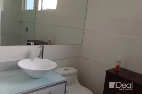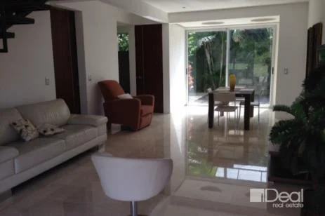 Nice apartment with great finishes, lots of lighting and excellent location. Large living and dining rooms with access to the garden and small deck. Kitchen includes appliances. On the second floor is a TV room/ office, and master bedroom with A/C, walk-in closet, and bathroom