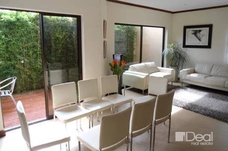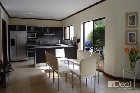 Beautiful condo located on a very private complex with just 8 houses and 24 hour security. Living room, dining room, and kitchen with open space plan, lots of lighting and great finishes. Nice deck on the garden. On the second floor there are three bedrooms, two of them share a bathroom and the Master has its own bathroom + walk-in closet. Condo is leased with appliances